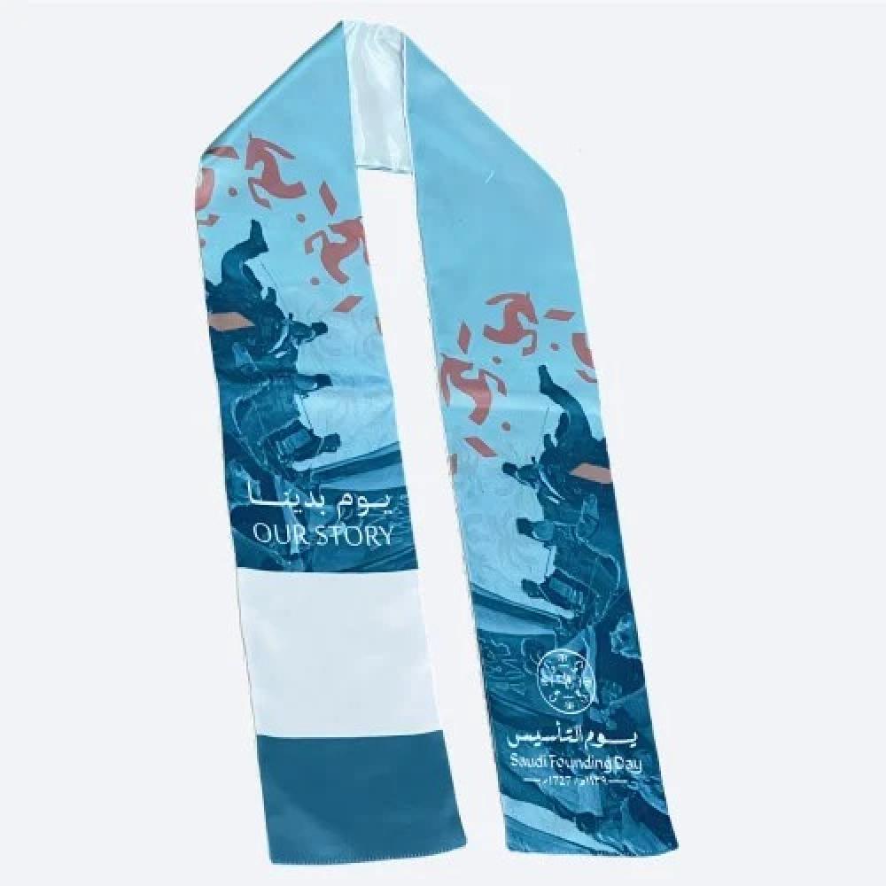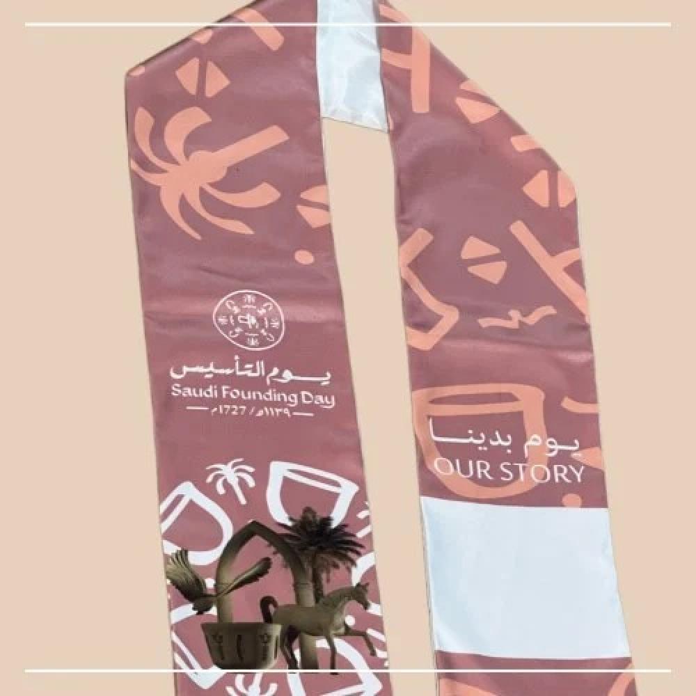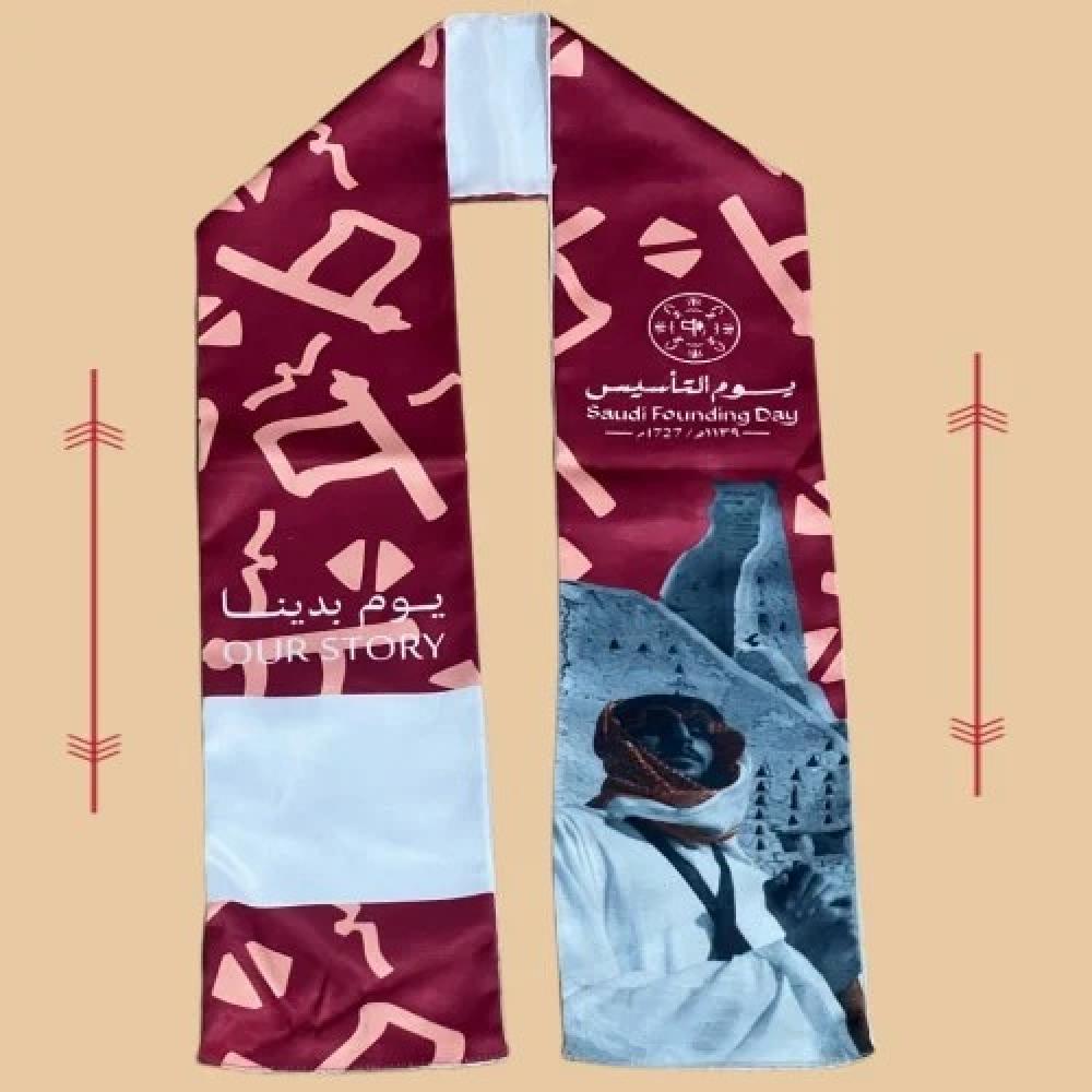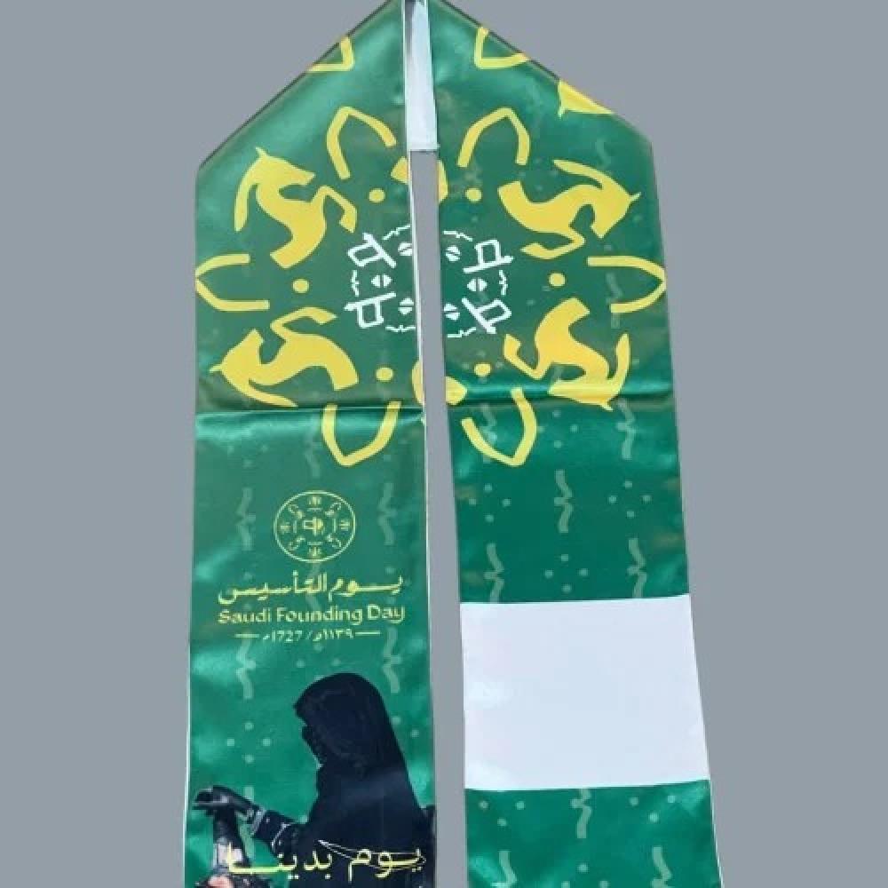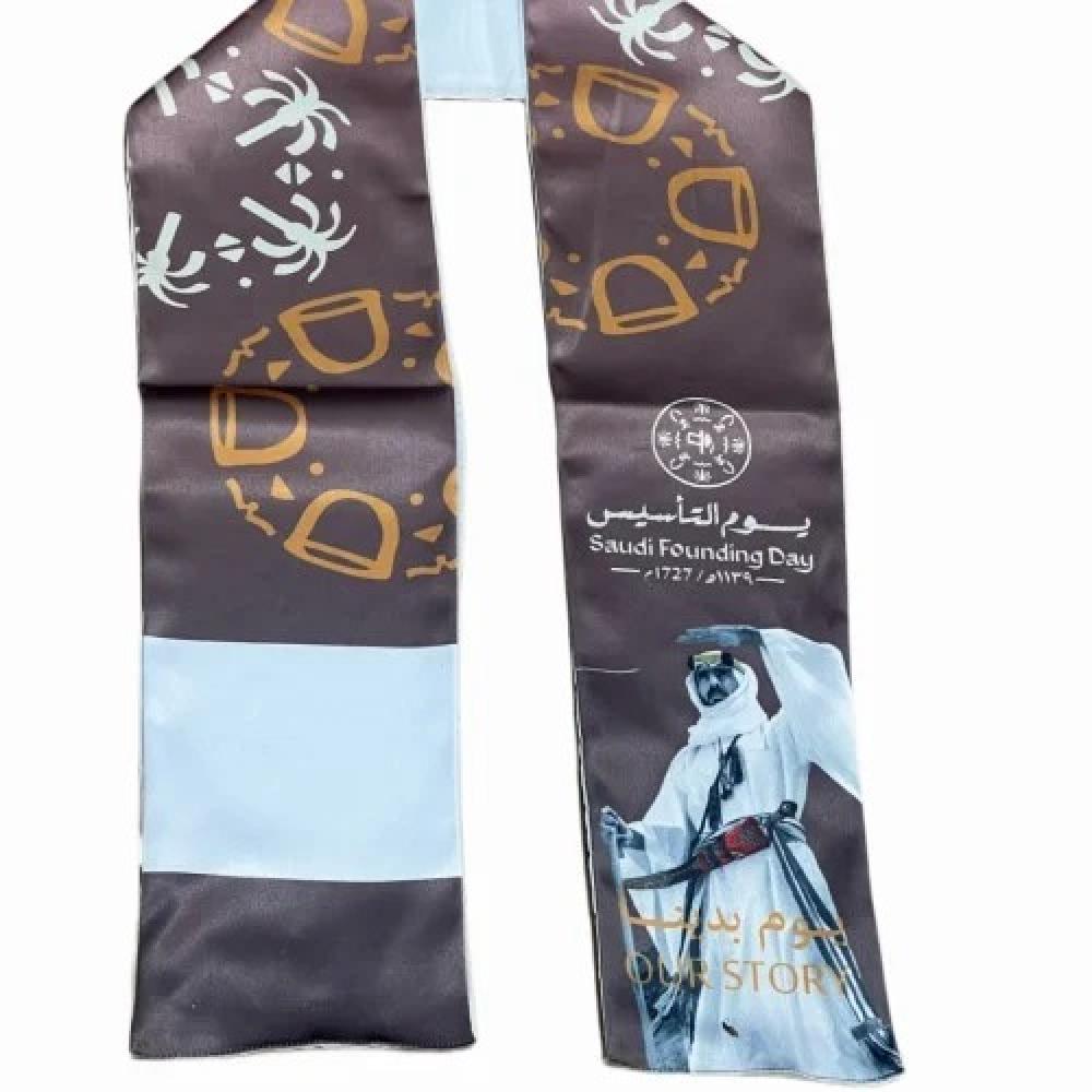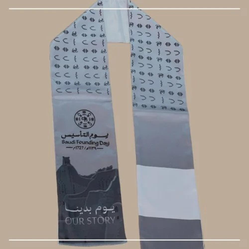 - شعار يوم التأسيس: يحتوي الوشاح على شعار مميز يرمز ليوم التأسيس السعودي. سيكون هذا الوشاح تذكارًا رائعًا لهذه المناسبة الوطنية الهامة.